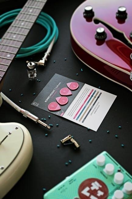 Guitar arpeggios, often detailed in PDF guides, benefit from proper guitar selection and amplification, ensuring clarity and tone for effective practice.