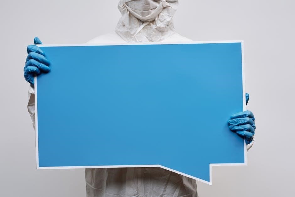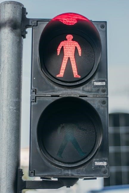 Colors and symbols on traffic signage panels PDF play a critical role in conveying standardized messages. Red typically signifies prohibitions, yellow warnings, blue Mandatory actions, and green guidance. Symbols are universally recognized, such as diamonds for warnings, circles for mandatory actions, and triangles for dangers. Bright colors ensure visibility, while symbols simplify communication for diverse drivers. Compliance with legislation ensures consistency, while international standards enhance global understanding. Effective use of colors and symbols minimizes confusion and maximizes road safety.